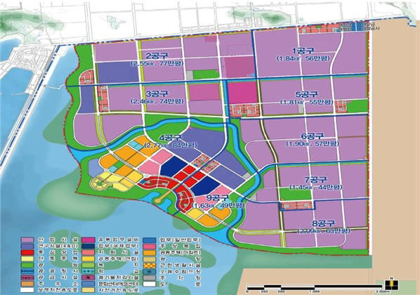 ㅇ 한국농업촌공사는 미착수 공구의 추진방향을 확정하고 연구용역을 통해 토지이용계획 수립 계획 - 매립 마무리 단계에 있는 5,6공구 조성공사도 빠르게 진행 예정