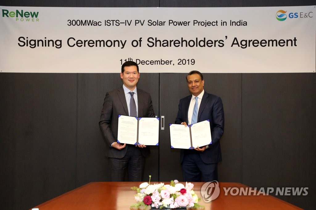 ㅇ 2019년 12월 11일, GS건설은 서울 본사에서 파트너사인 인도 리뉴 파워와 ‘ISTS-IV 300MW 태양광발전사업’ 주주간협약 서명식을 가짐