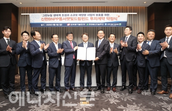 ㅇ 동서발전은 '동서햇빛드림펀드' 조성을 위해 현대에너지솔루션, 신한BNP파리바자산운용과 투자 계약을 체결함 - 동서햇빛드림펀드 : 국내 태양광산업 활성화와 소규모 태양광사업자 보호하는 프로젝트 |